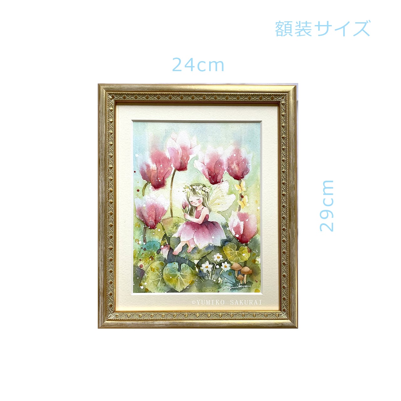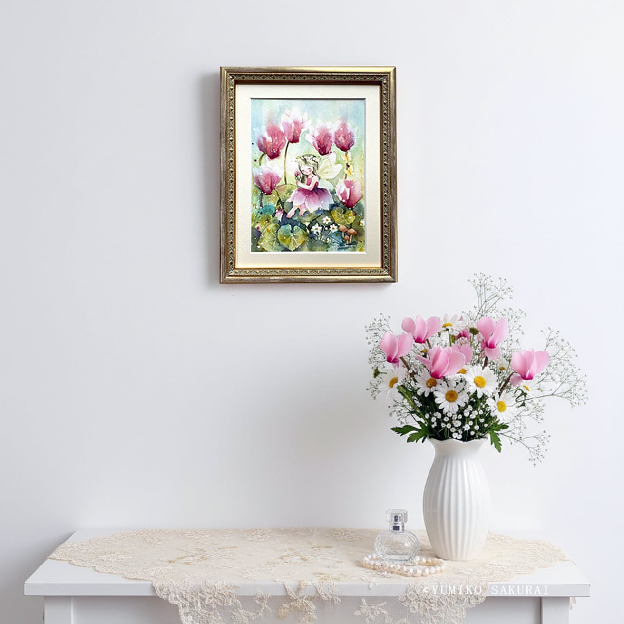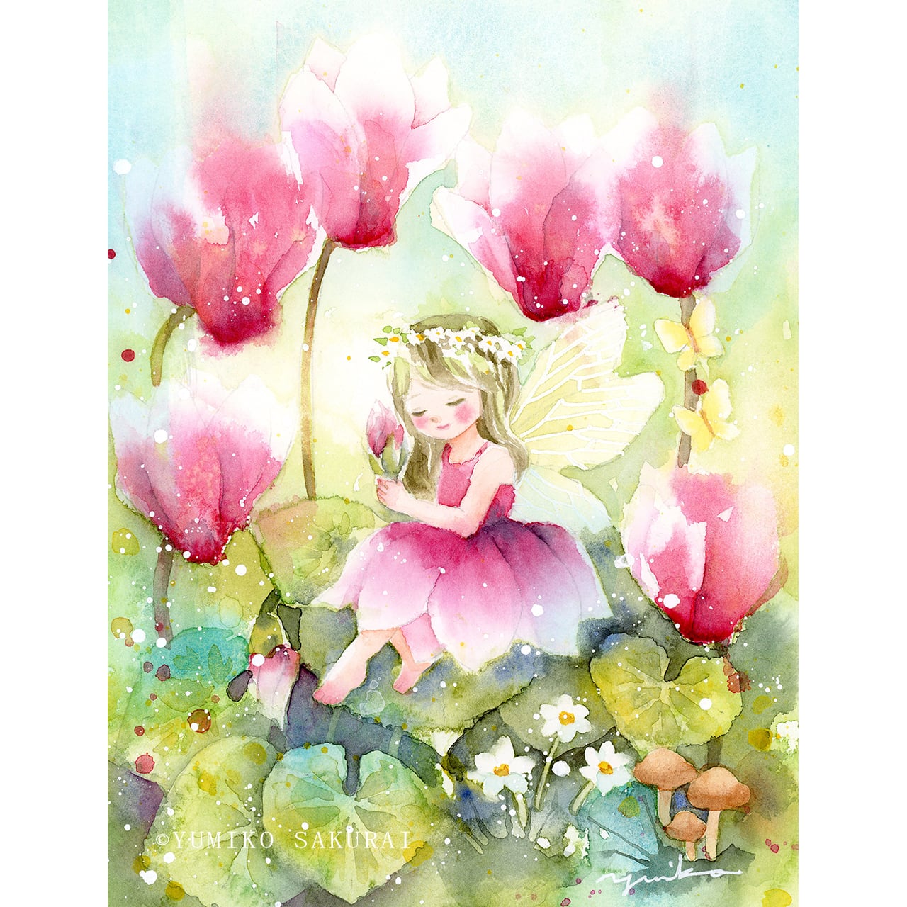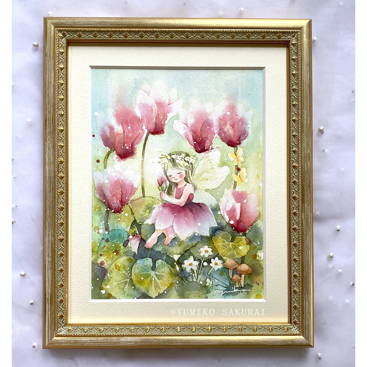 原画 『シクラメンの妖精 』 水彩画 妖精の絵